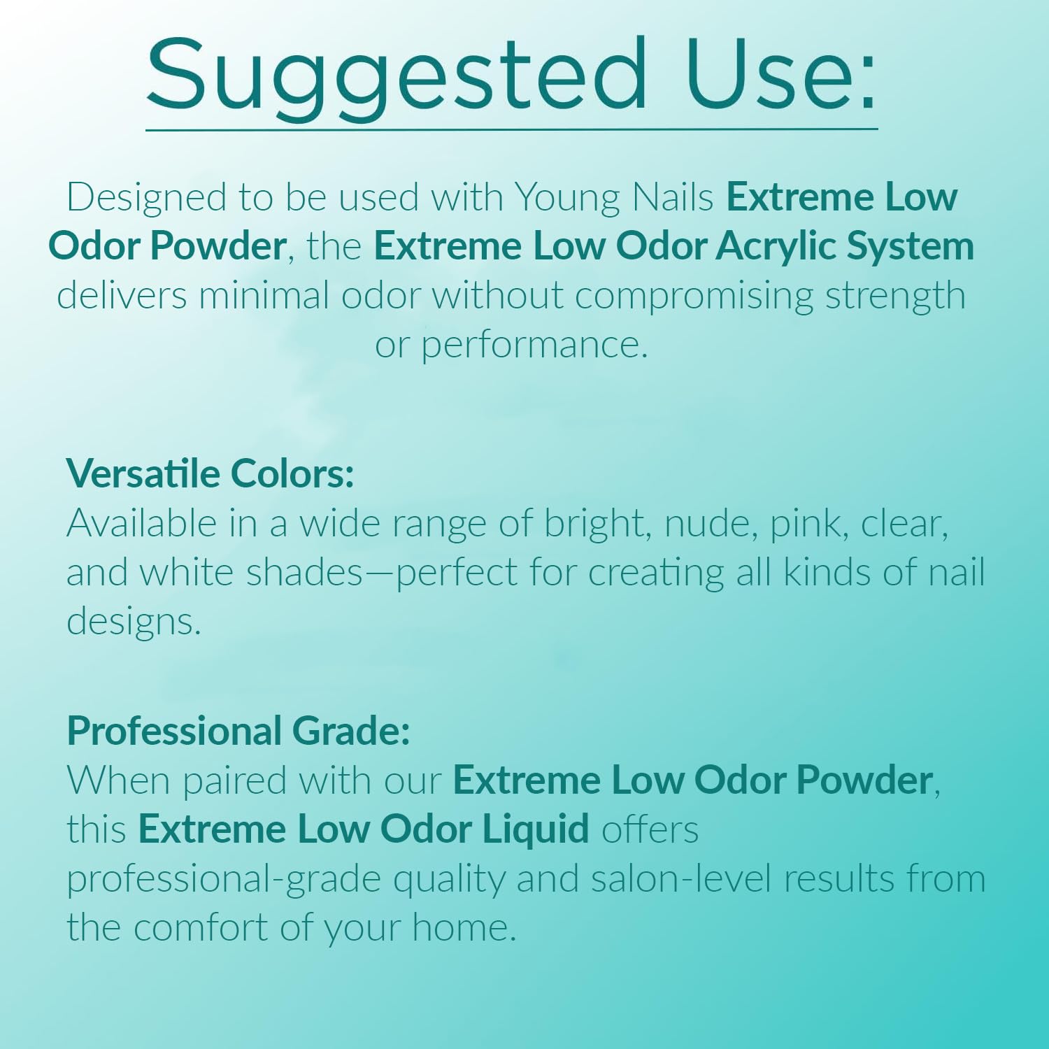 - PROFESSIONAL SALON GRADE: Young Nails is used by nail professionals to provide a luxury salon experience.